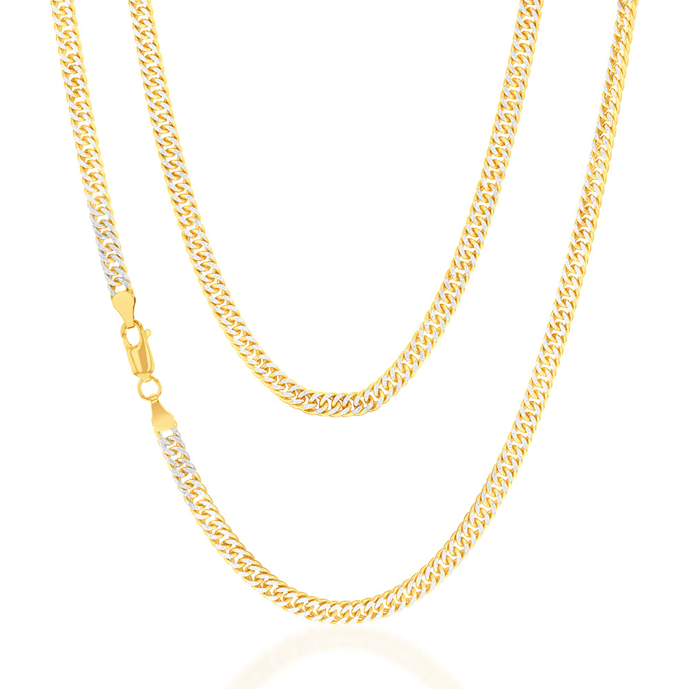 9ct Silverfilled Yellow And White Gold Double Curb 50cm Chain
