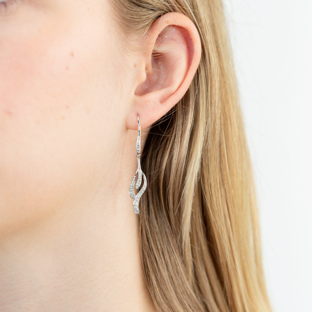 9ct Superb White Gold Diamond Drop Flutter Earrings