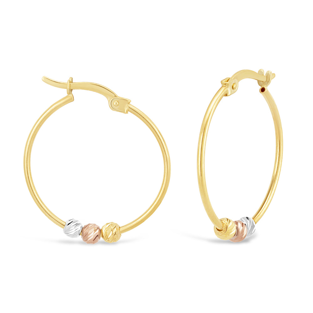 9ct Three-Tone Gold Diamond Cut Beaded Hoop Earrings