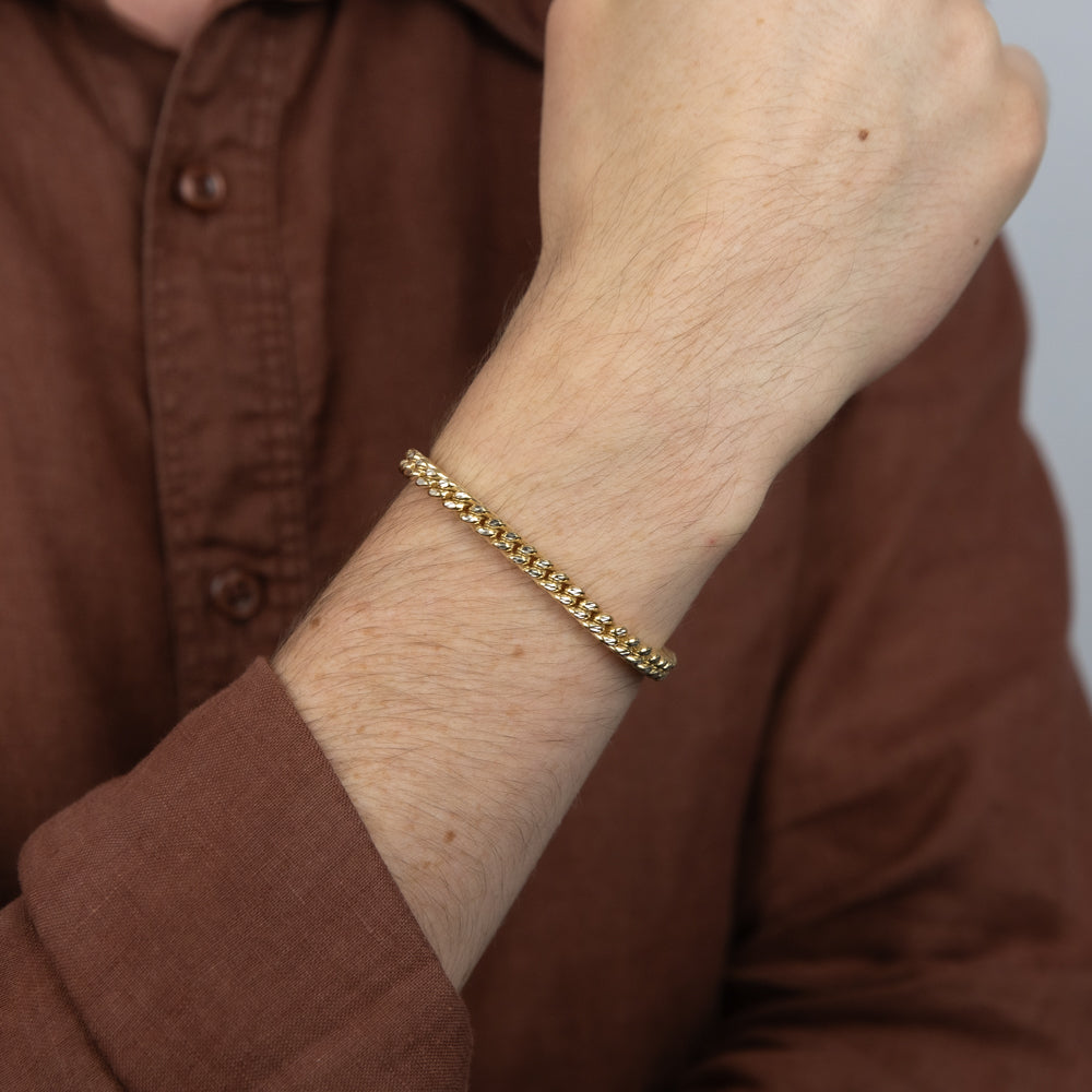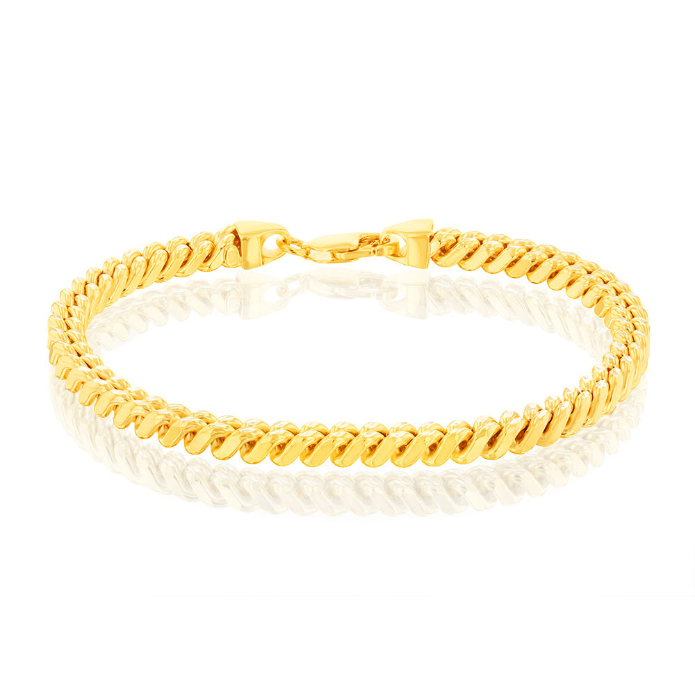 9ct Two Tone Gold Silverfilled Diamond Cut Square Snake 21cm Bracelet