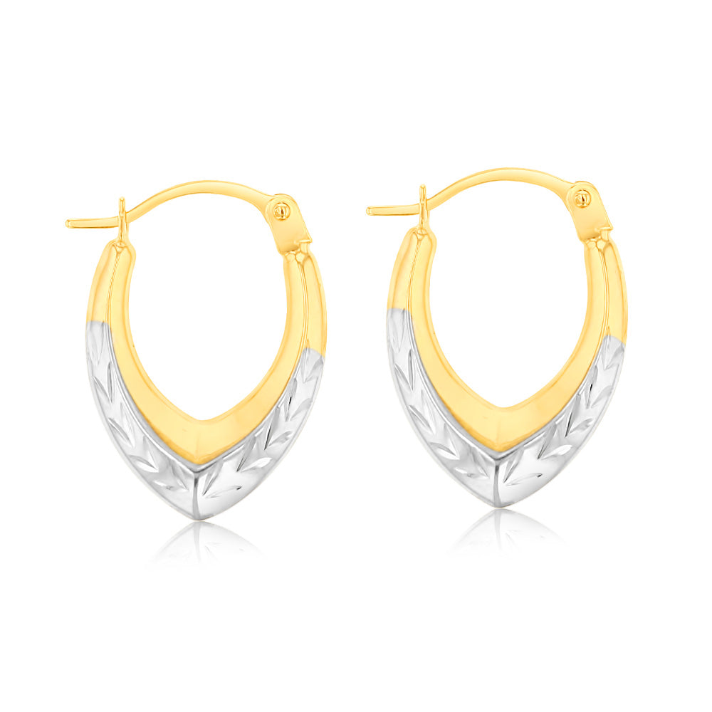 9ct Two Tone White And Yellow Gold Diamond Cut Creole Earrings