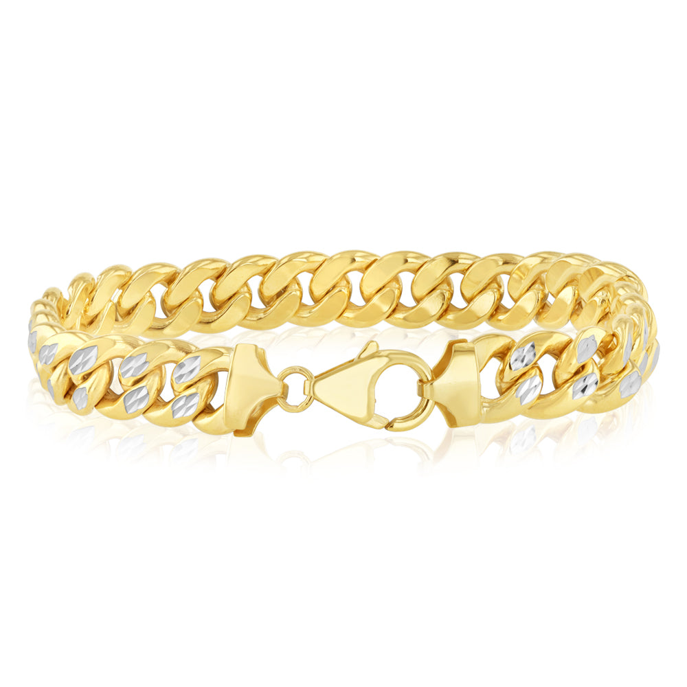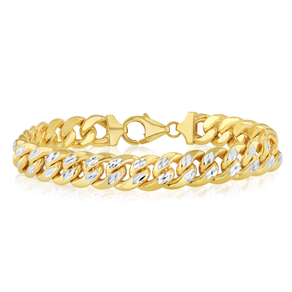 9ct Two Toned Yellow and White Gold Silver-filled Diamond Cut 250 Gauge Curb 20cm Bracelet