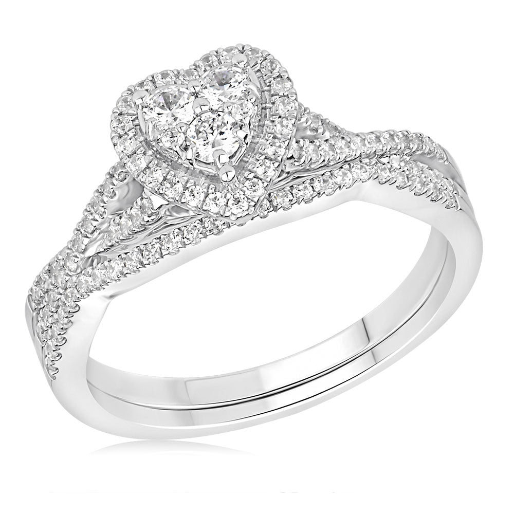 9ct White Gold 1/2 Carat Diamond Heart Shape 2-Ring Bridal set