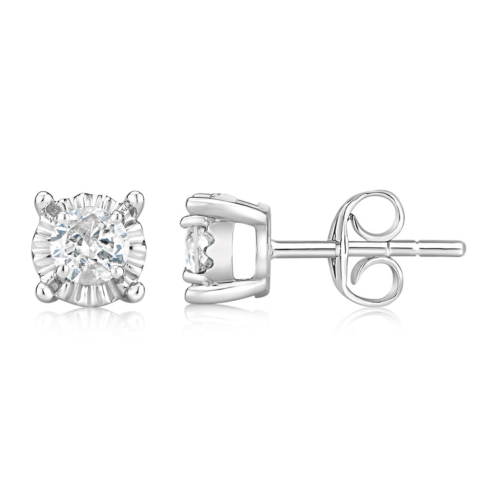9ct White Gold 1/2 Carat Diamond Solitare Studs with Disc Setting