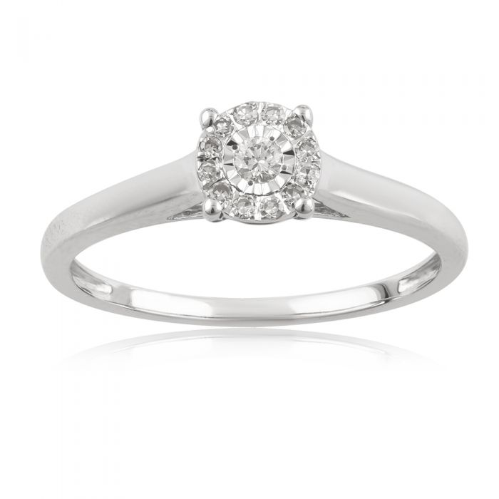 9ct White Gold 10 Points Diamond Ring with 13 Brilliant Cut Diamonds