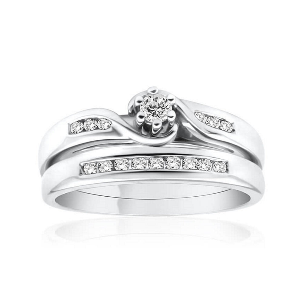 9ct White Gold 2 Ring Bridal Set With 1/4 Carat Diamond