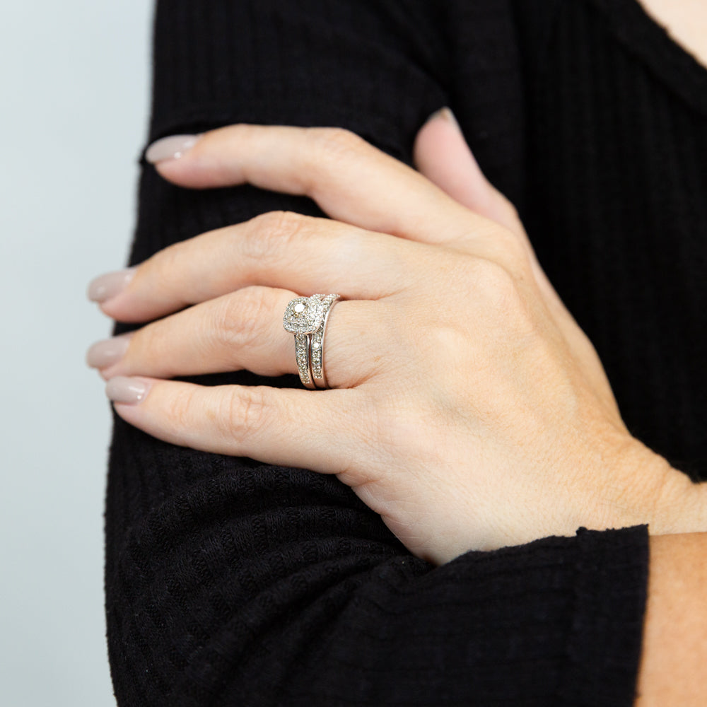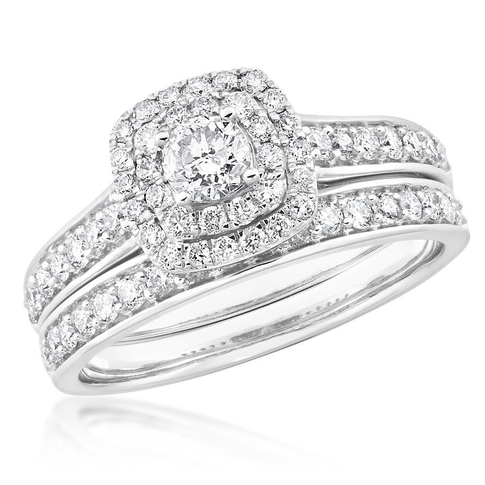9ct White Gold 2 Ring Bridal Set With 65 Diamonds Totalling 1 Carat