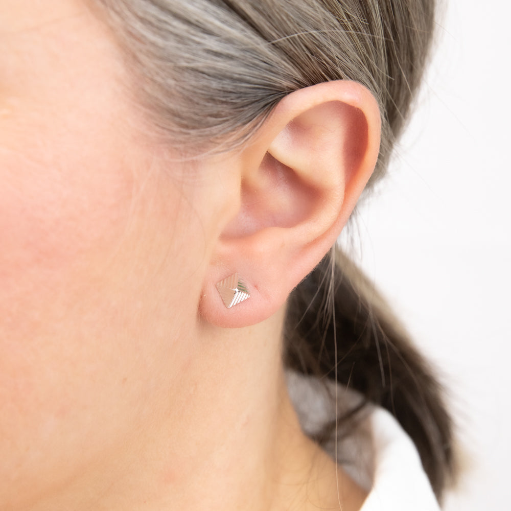 9ct White Gold 6 X 6mm Ribbed Detail Pyramid Stud Earrings