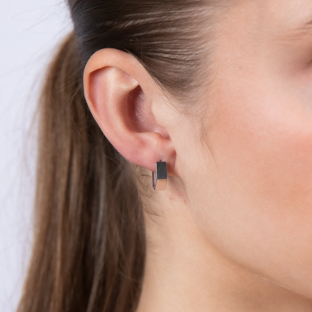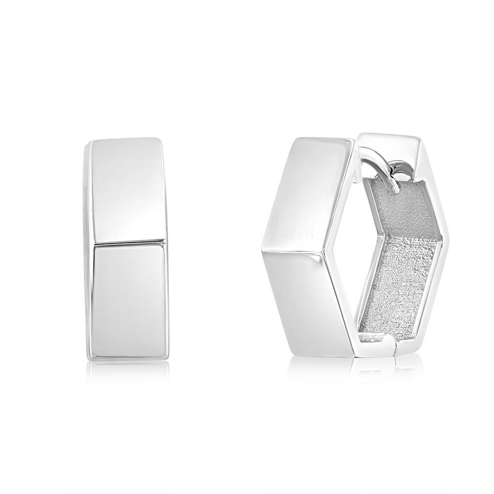 9ct White Gold Broad Geometric Huggie 11.8mm Hoop Earrings