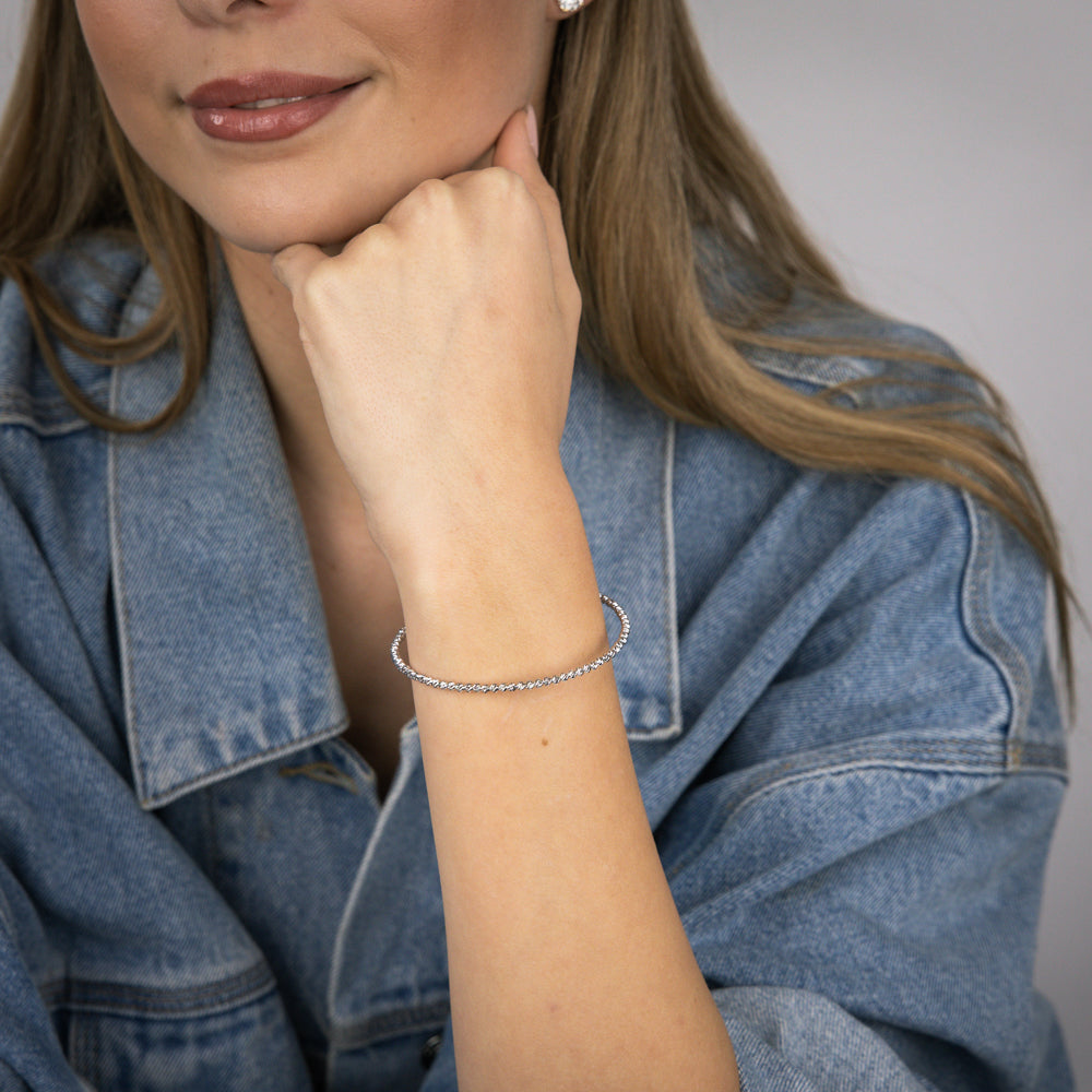 9ct White Gold Fancy 50mm X 60mm Bangle