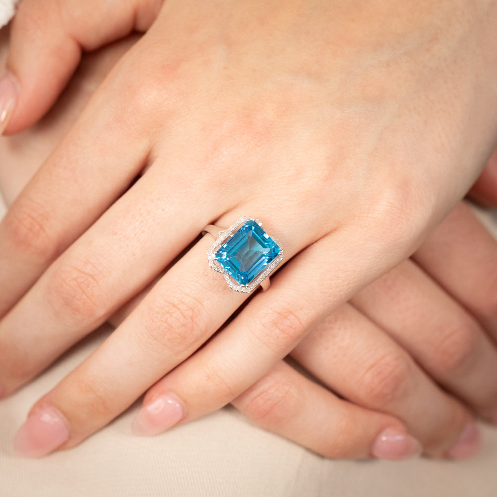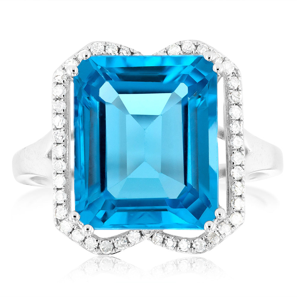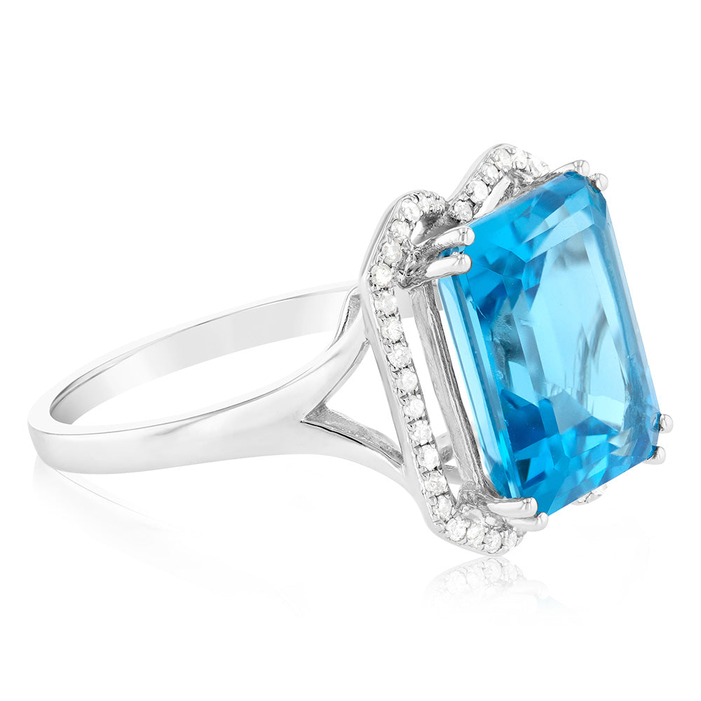 9ct White Gold Natural Blue Topaz And Diamond Ring