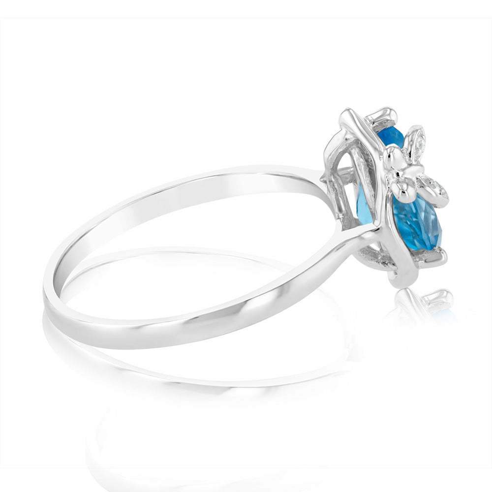 9ct White Gold Natural Blue Topaz And Diamond Ring