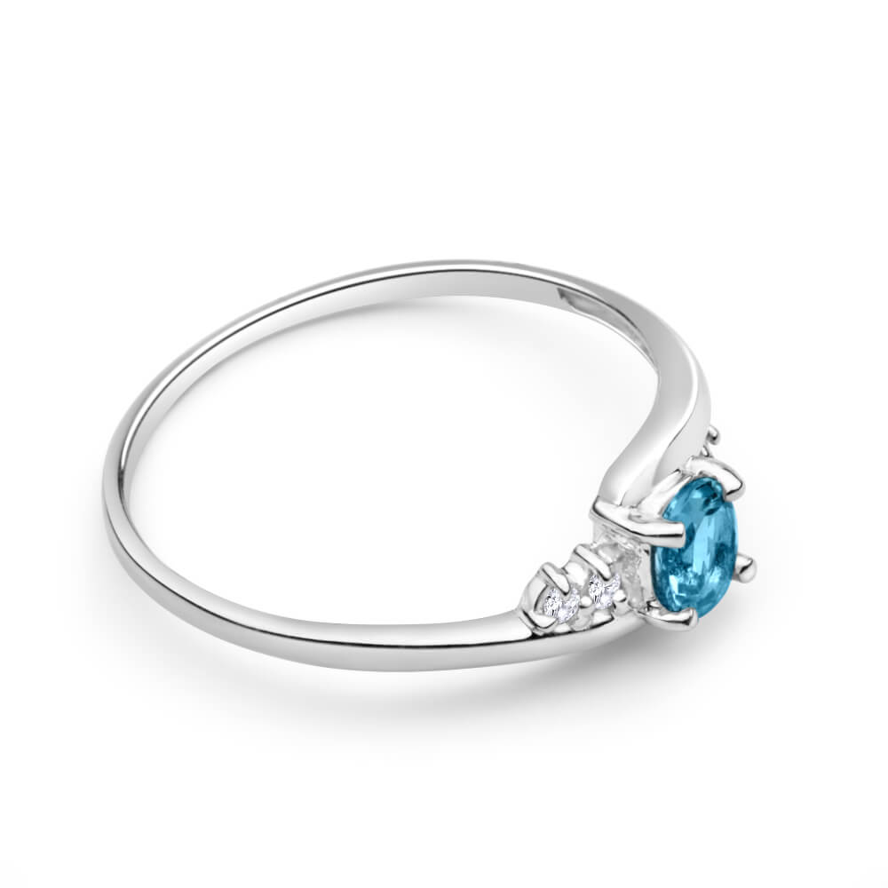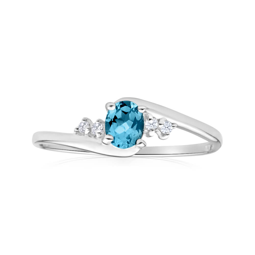 9ct White Gold Oval Cut Blue Topaz + Cubic Zirconia Ring