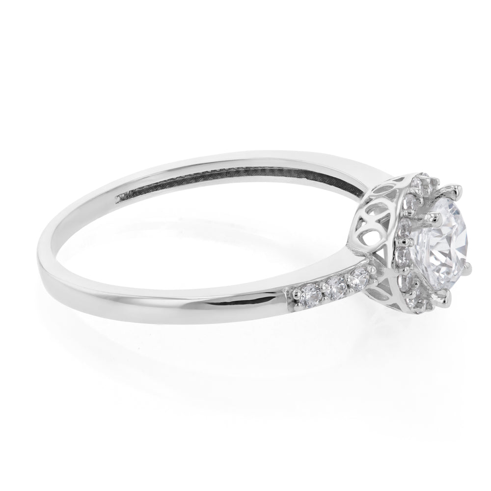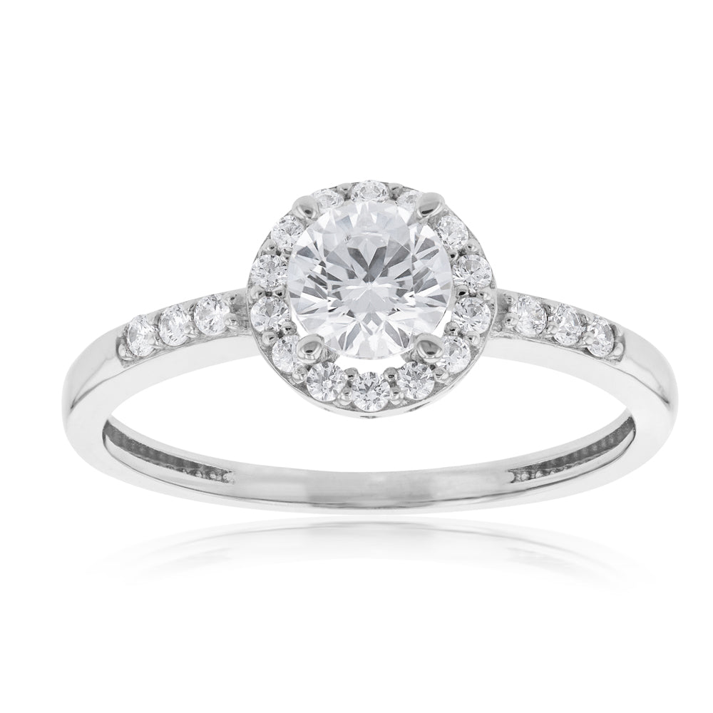 9ct White Gold Zirconia Halo Ring