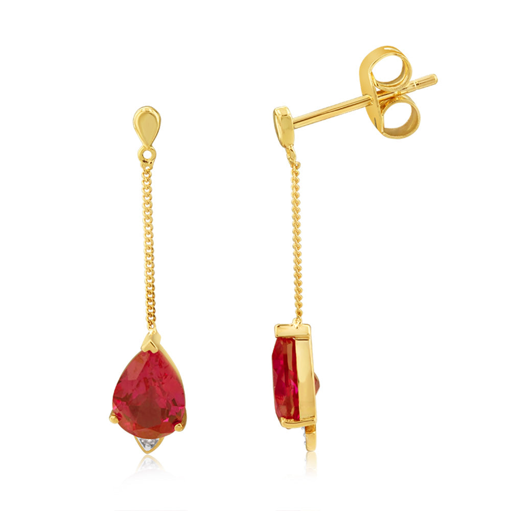 9ct Yellow And White Gold Ruby And Diamond Drop Earrings
