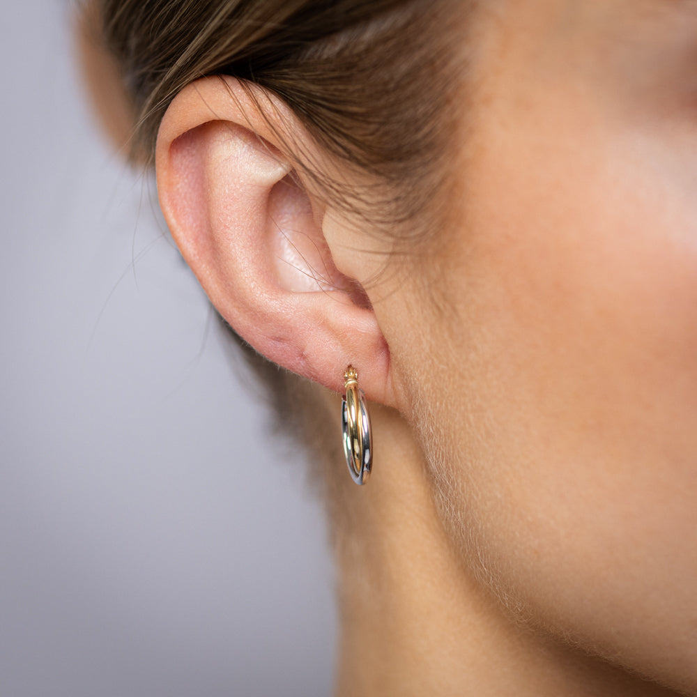 9ct Yellow And White Gold Two Tone Silverfilled Polished Twisted 16 X 20mm Hoop Earrings