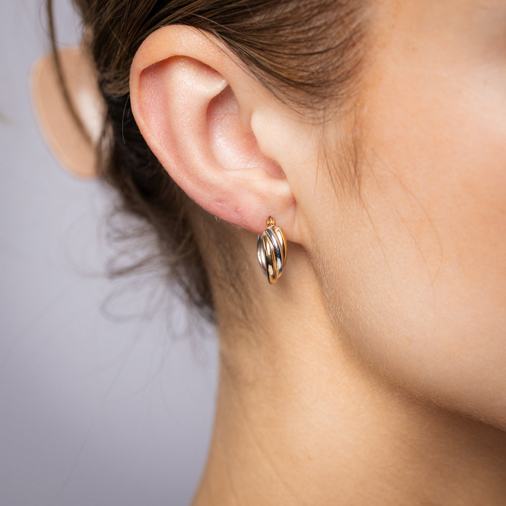 9ct Yellow And White Two Tone Gold Silverfilled 15 X 16mm Hoop Earrings