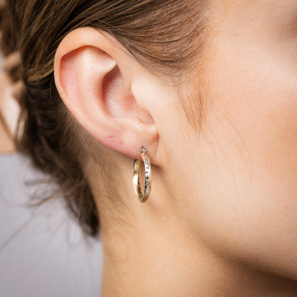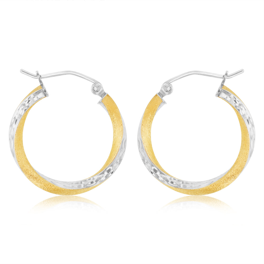 9ct Yellow And White Two Tone Gold Silverfilled Diamond Cut Hoop Earrings