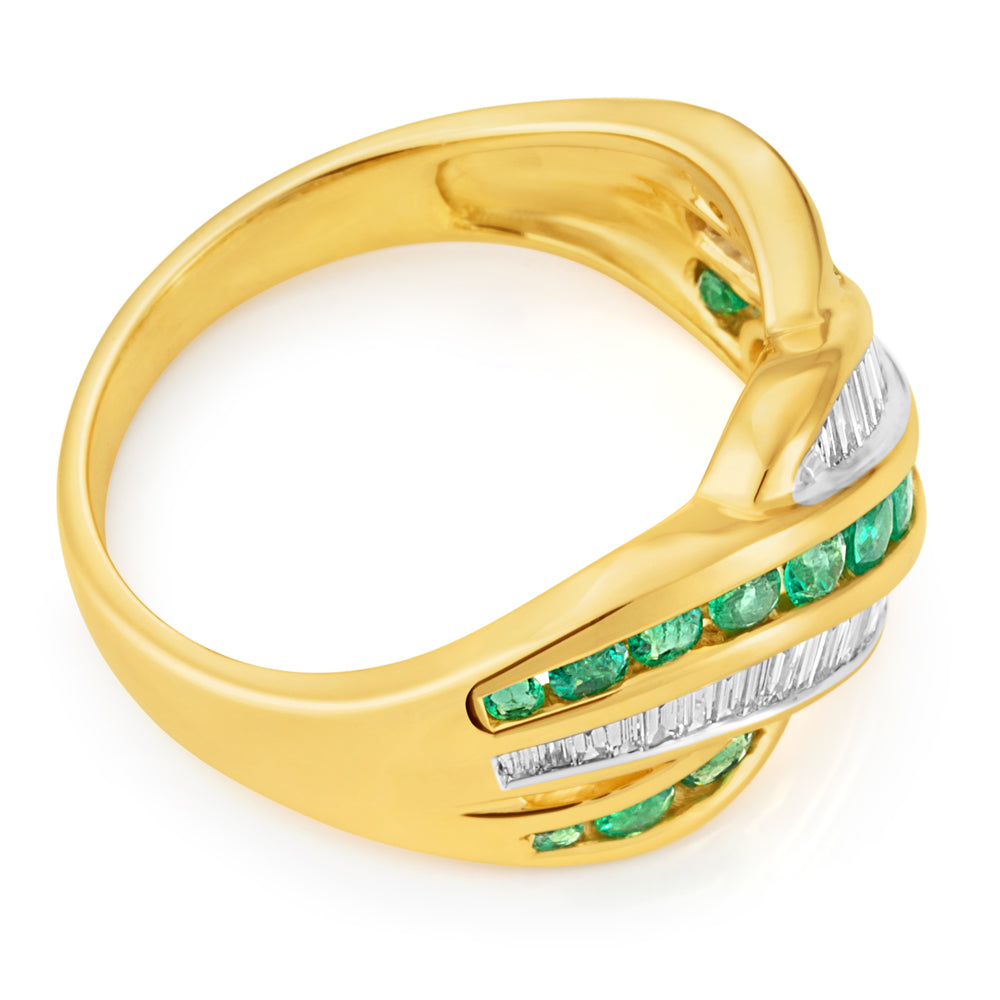 9ct Yellow Gold 0.73ct Natural Emerald and 0.30 Carat Diamond Ring