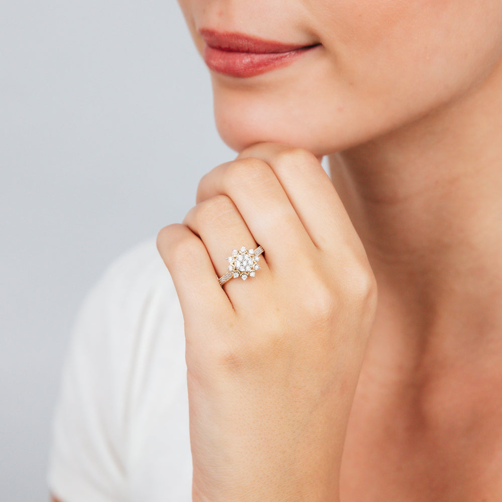 9ct Yellow Gold 1/10 Carat Diamond Cluster Ring with 27 Round Brilliant Diamonds