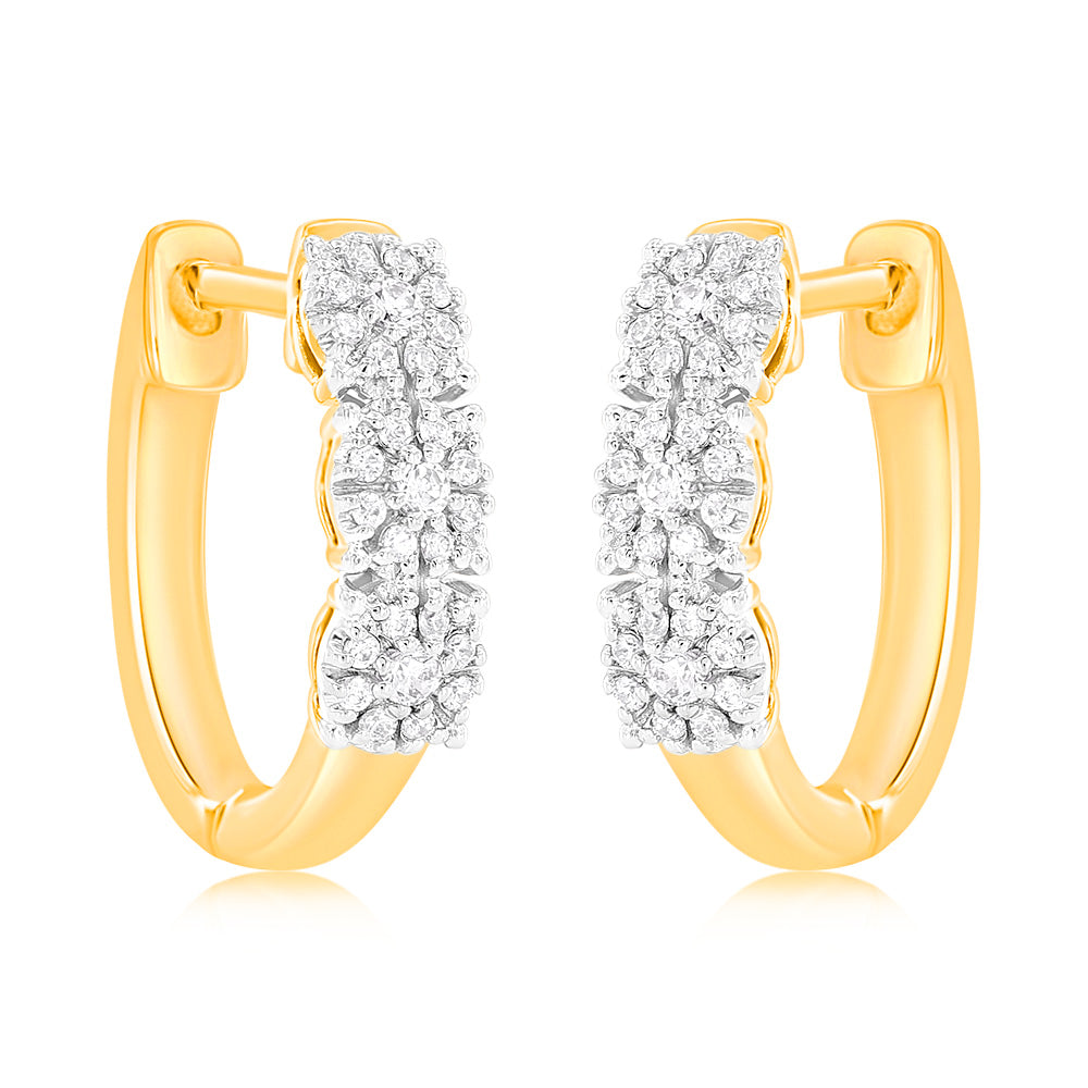 9ct Yellow Gold 1/10 Carat Diamond Hoop Earrings set with 54 Round Brilliant Cut Diamonds