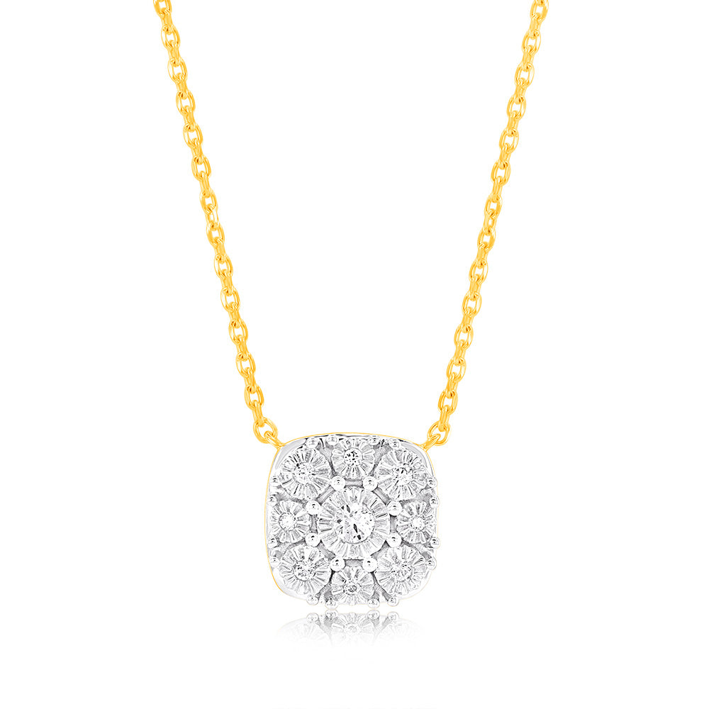 9ct Yellow Gold 1/10 Carat Diamond Pendant with 9 Brilliant Cut Diamonds in Disc Setting