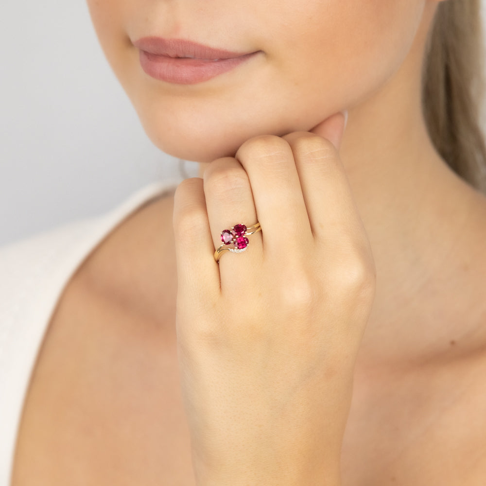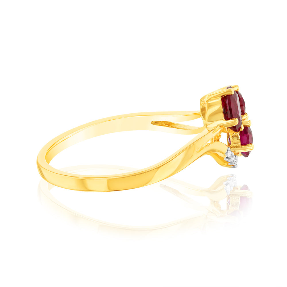 9ct Yellow Gold 1.19Ct Created Ruby & 5 Diamond Ring
