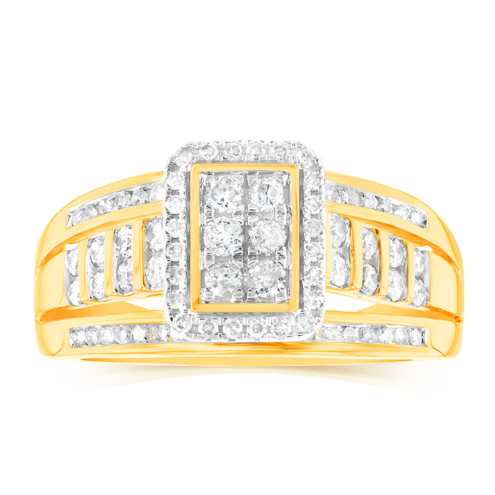 9ct Yellow Gold 1/2 Carat Diamond Ring set with 86 Round Brilliant Cut Diamonds