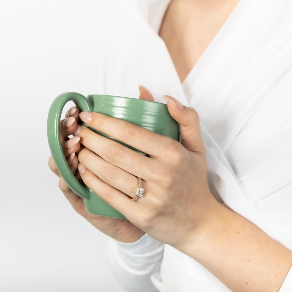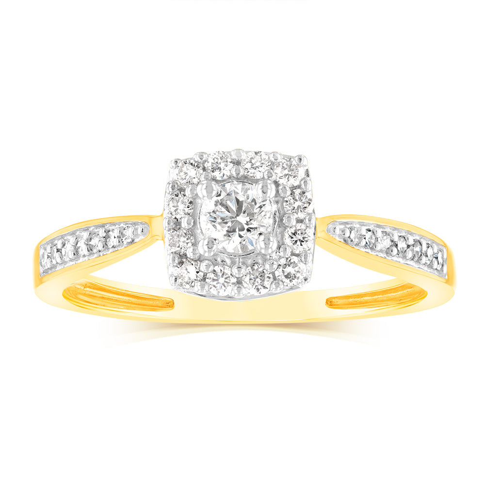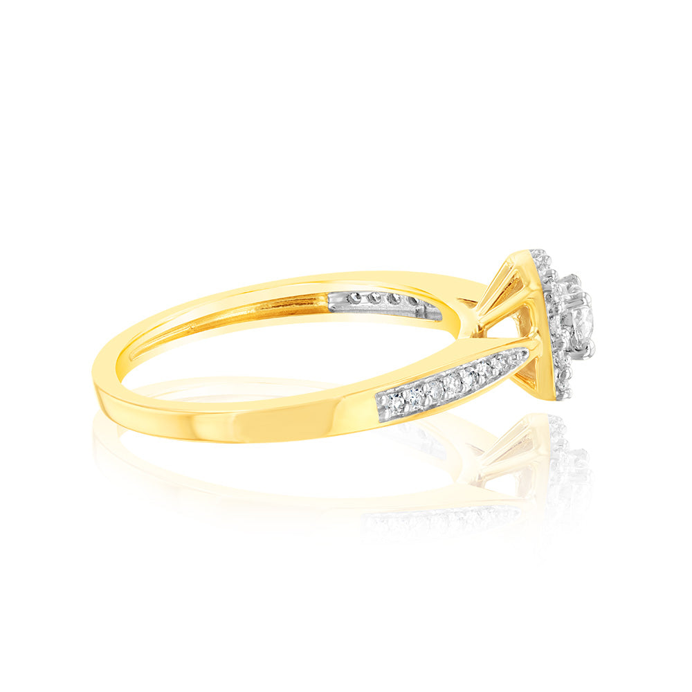 9ct Yellow Gold 1/3 Carat Diamond Halo Solitaire Ring with 12 Side Diamonds