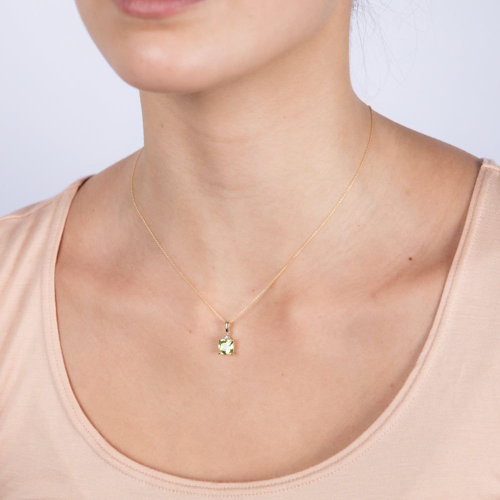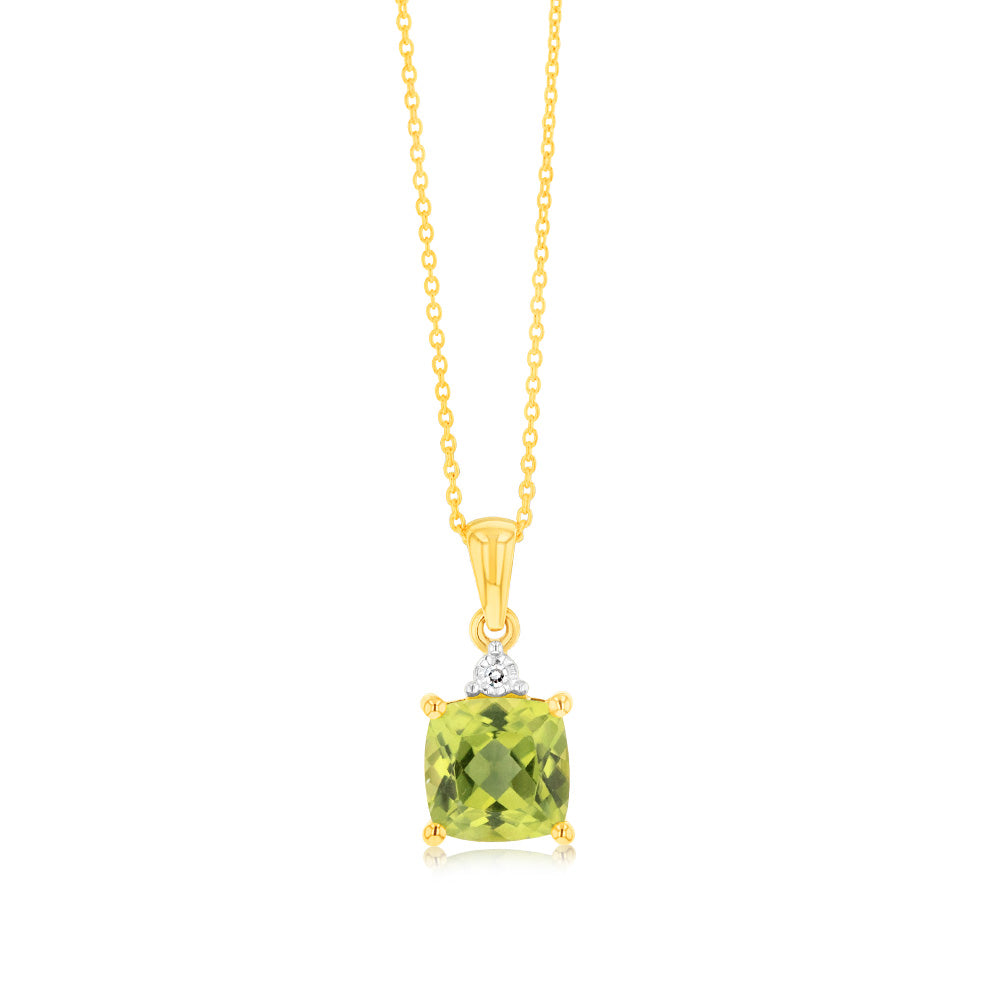 9ct Yellow Gold 1.7ct Peridot and Diamond Pendant On 45cm Chain