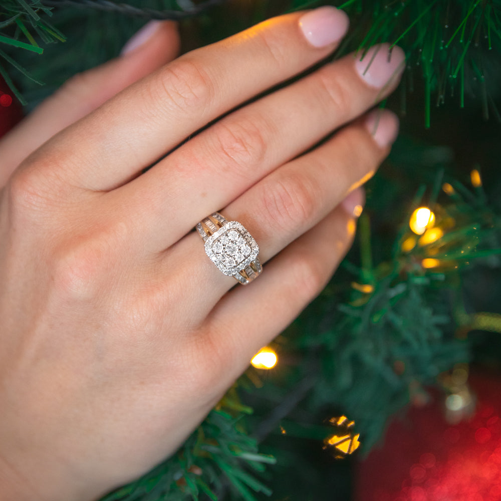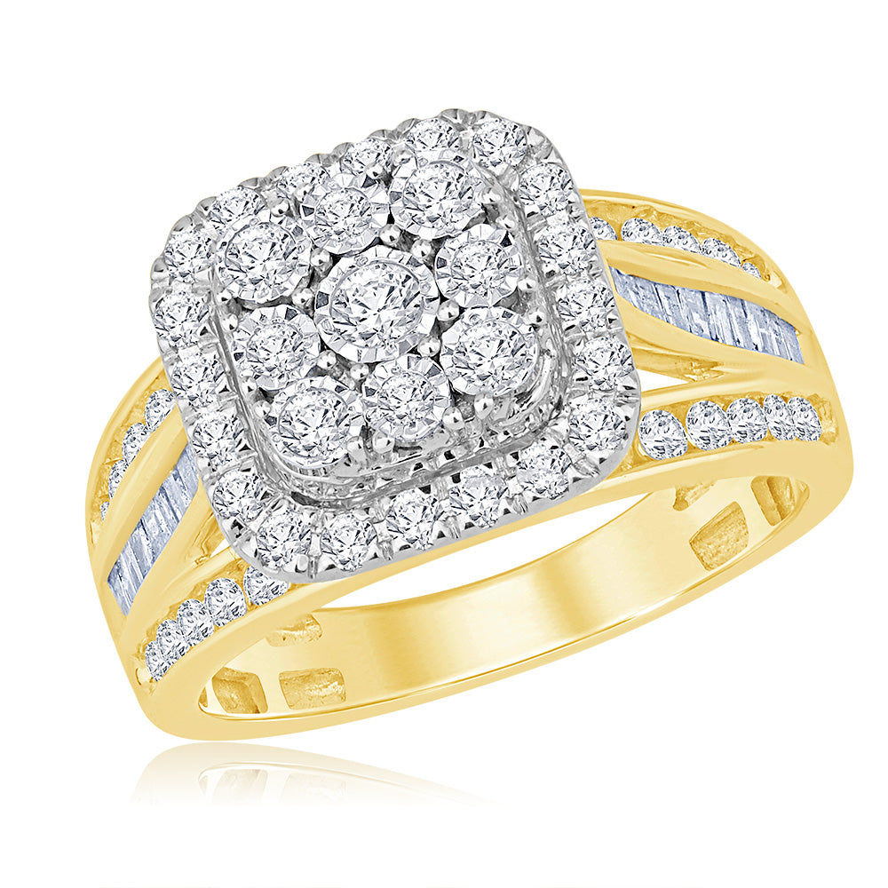 9ct Yellow Gold 1 Carat Diamond Cushion Cluster Ring