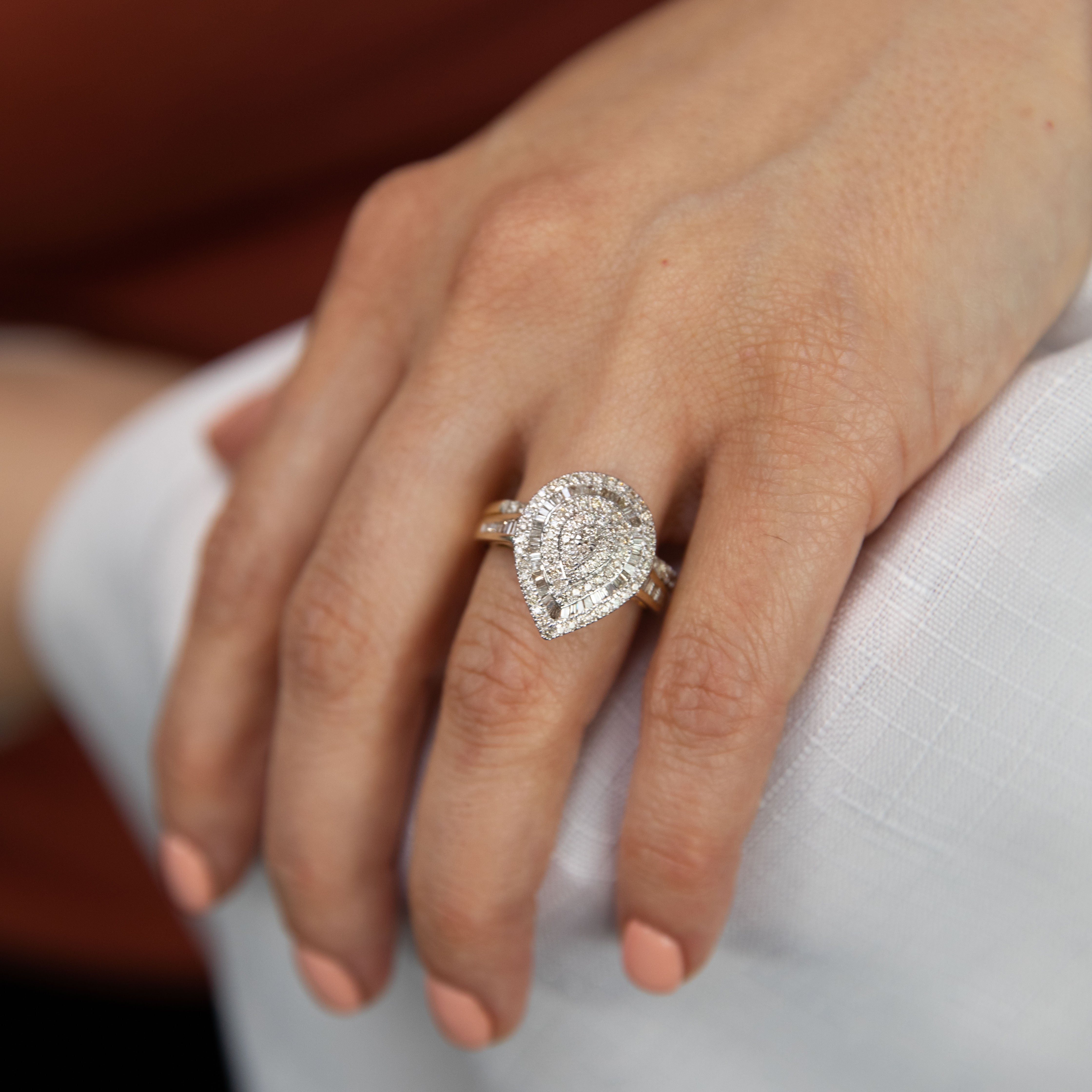 9ct Yellow Gold 1 Carat Diamond Pear Shape Cluster 2-Ring Bridal Set