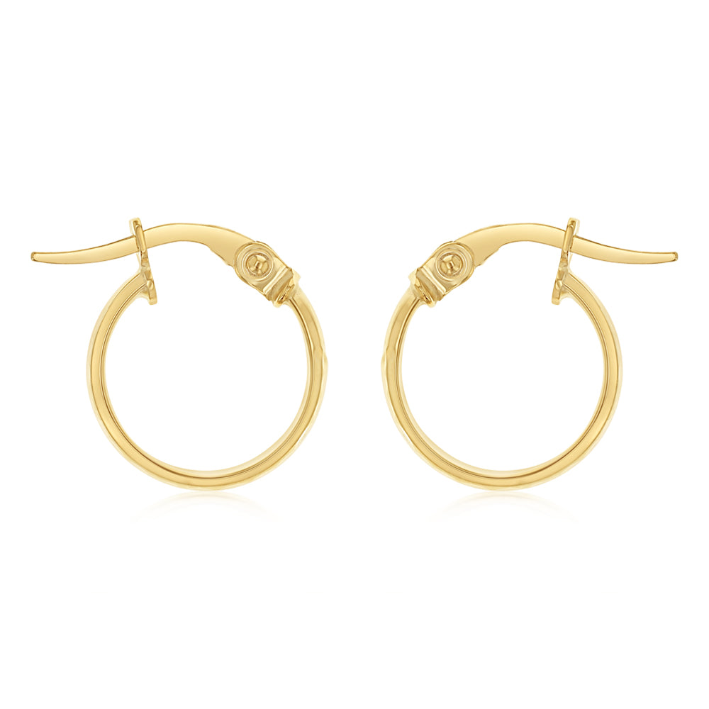 9ct Yellow Gold 10mm Diamond Cut Hoop Earrings