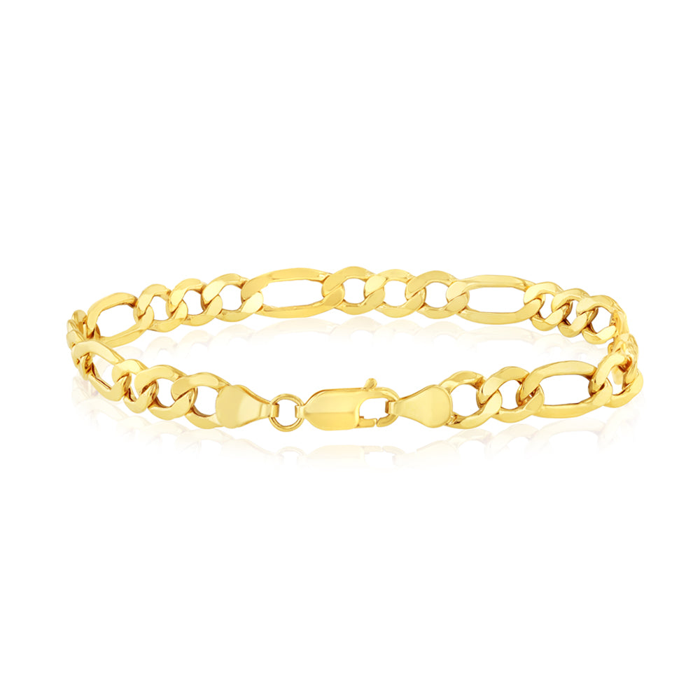 9ct Yellow Gold 170 Gauge Diamond Cut 1:3 Figaro 23cm Bracelet