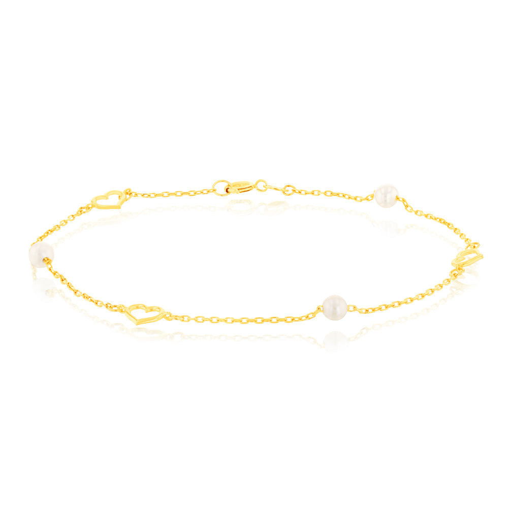 9ct Yellow Gold 19.10cm Heart and Pearl Bracelet