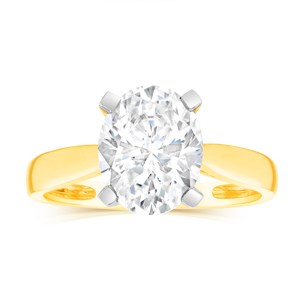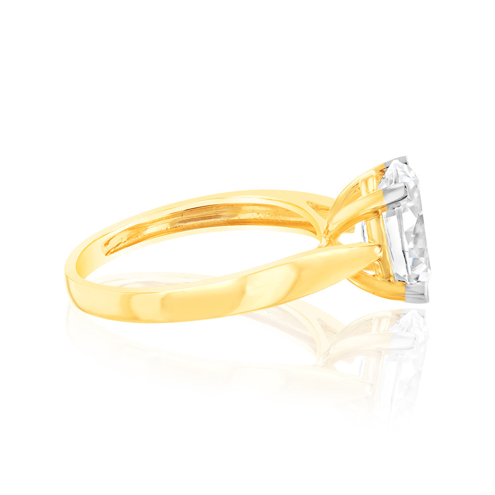 9ct Yellow Gold 2.00ct Diamond Equivalent 11X9MM Zirconia Solitaire Ring