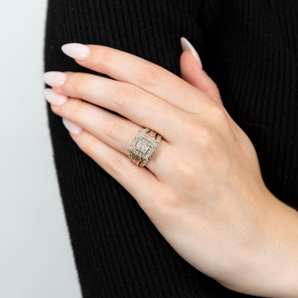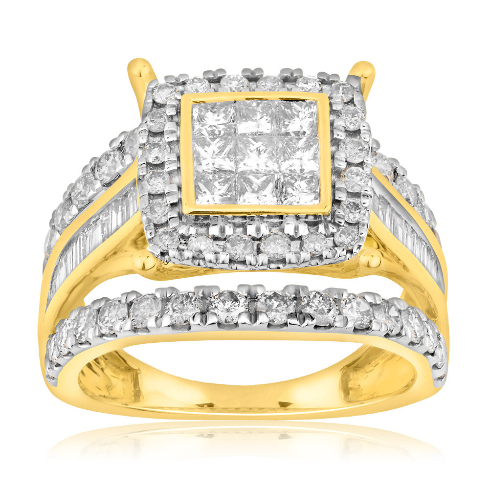 9ct Yellow Gold 2 Carat Diamond Cushion Shape Cluster Ring