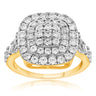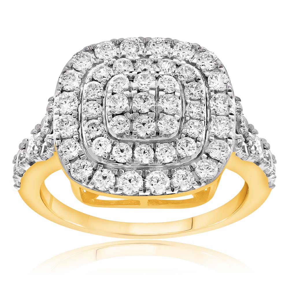 9ct Yellow Gold 2 Carat Diamond Cushion Shape Halo Cluster Ring