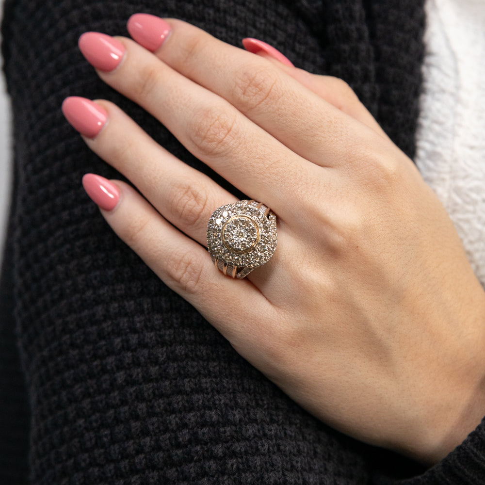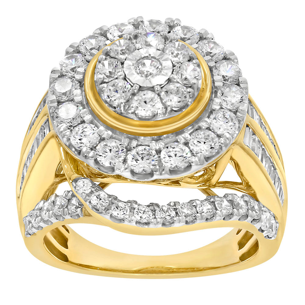 9ct Yellow Gold 3.05 Carat Diamond Ring with Brilliant and Tapered Baguette Diamonds