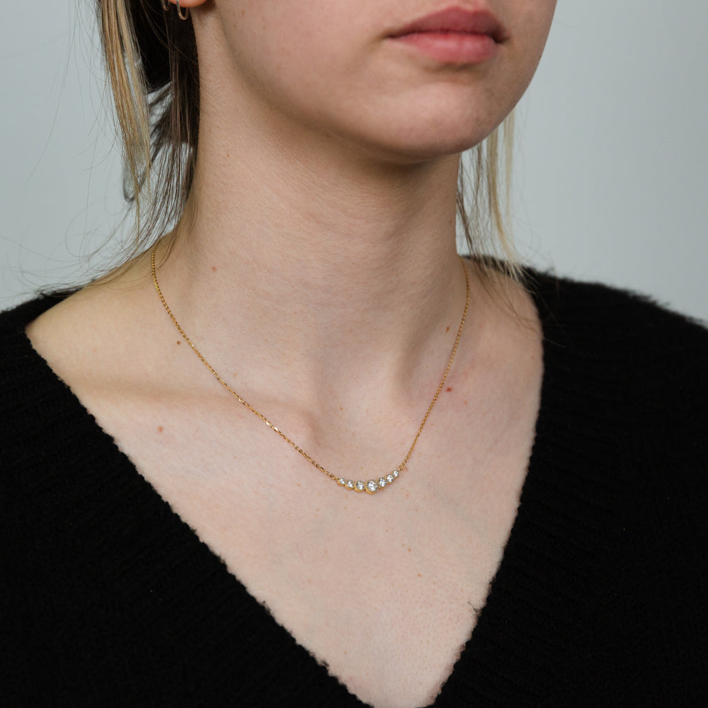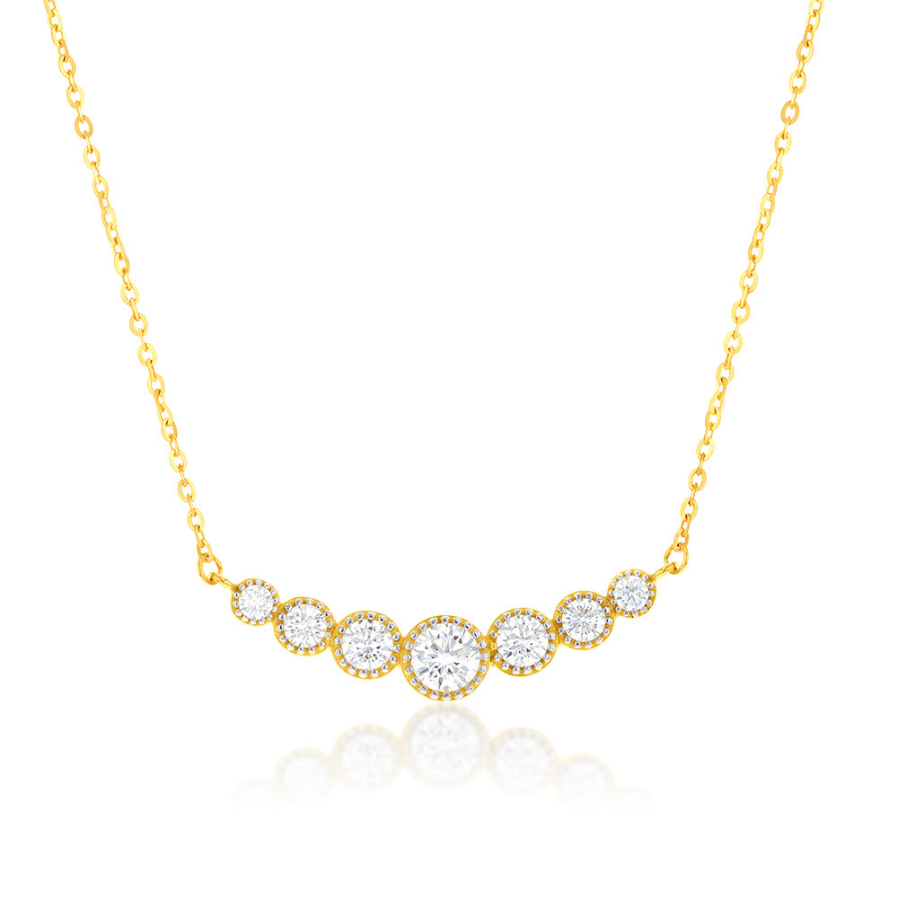 9ct Yellow Gold 43cm Zirconia Graduated Necklet