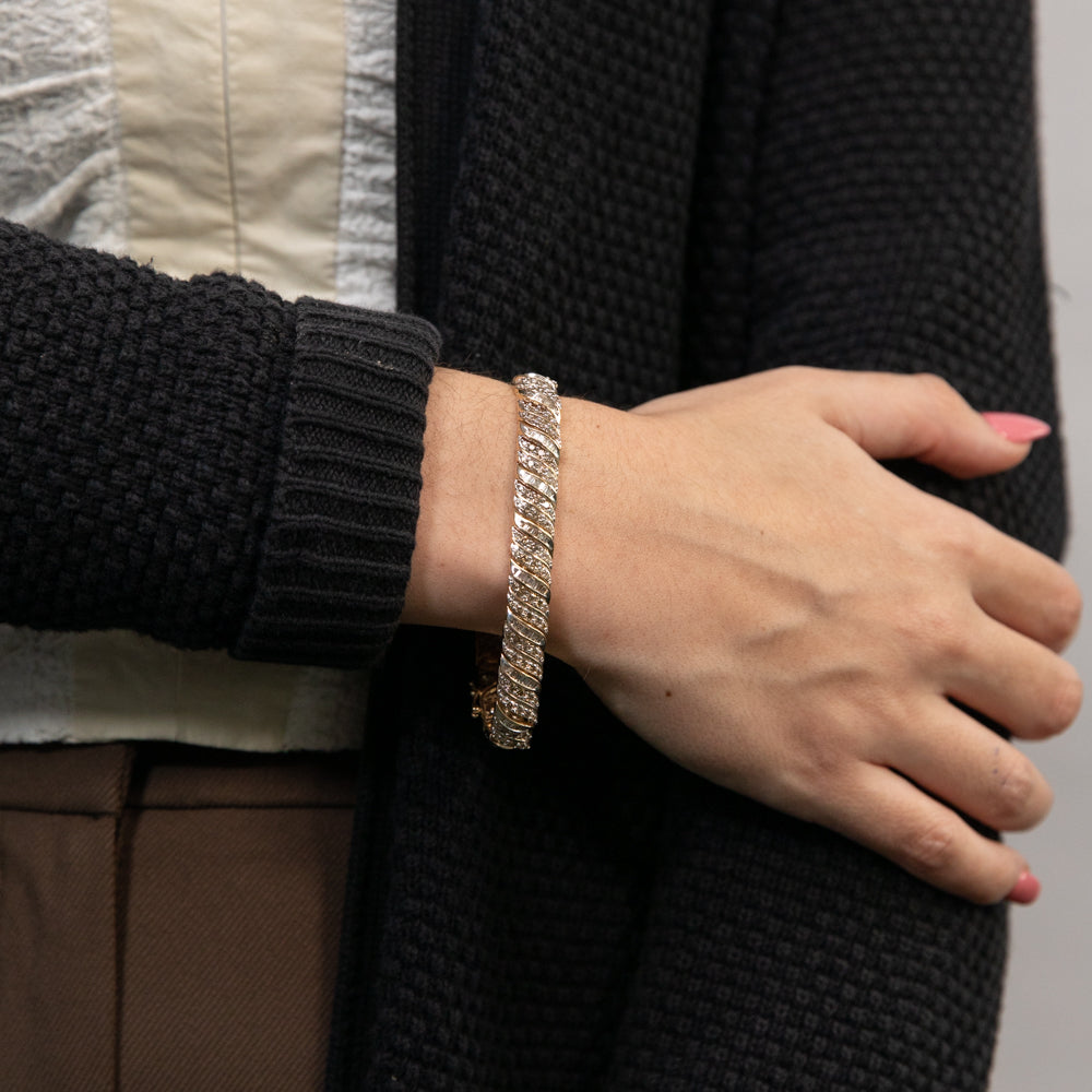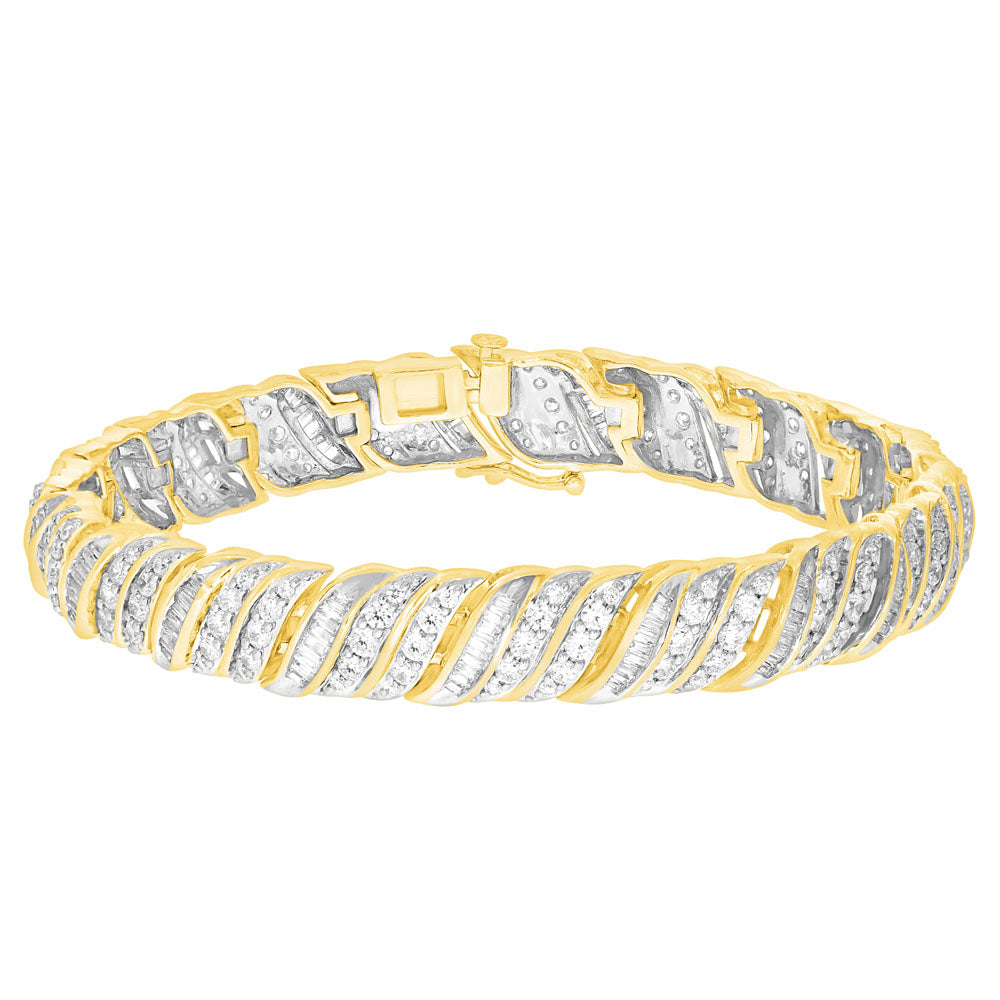9ct Yellow Gold 5 Carat Diamond 18.5cm Bracelet with Brilliants and Baguettes