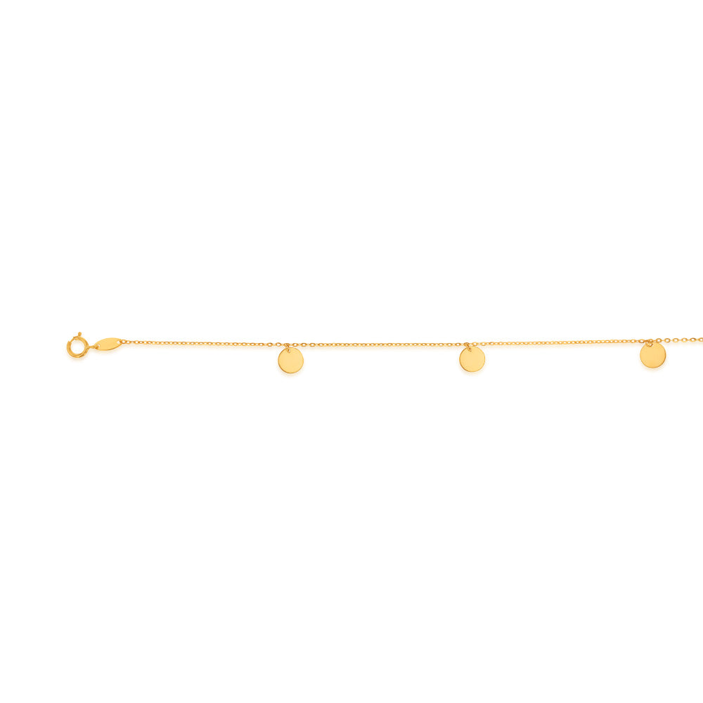 9ct Yellow Gold 5 Circle Charms 27cm Anklet
