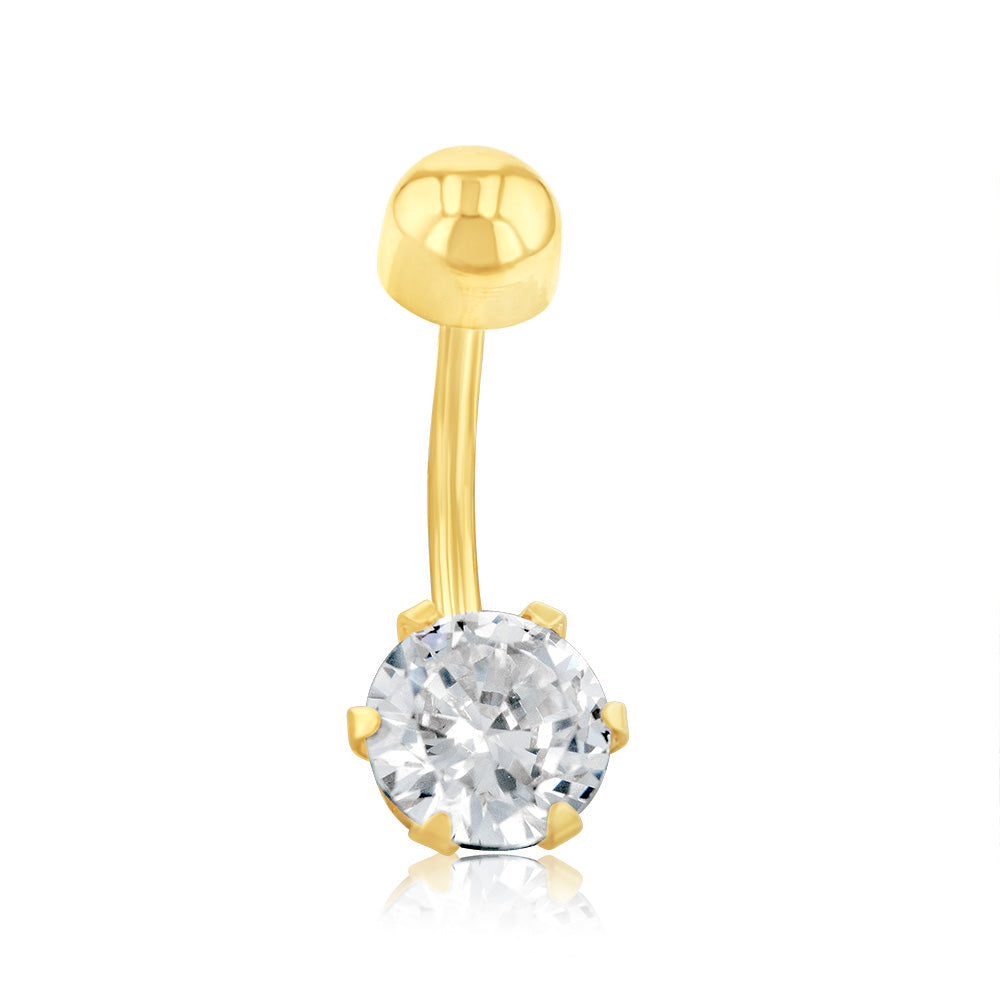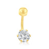 9ct Yellow Gold 6mm Round Cubic Zirconia 6 Claw Belly Bar
