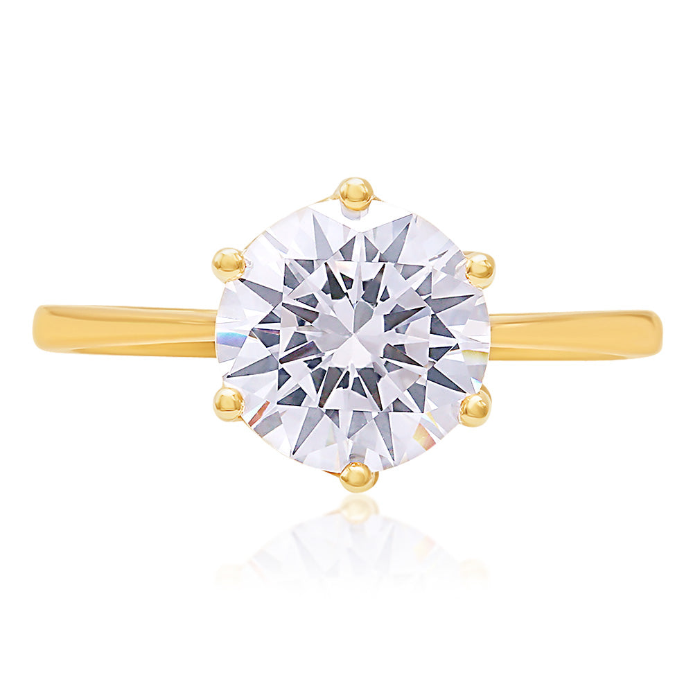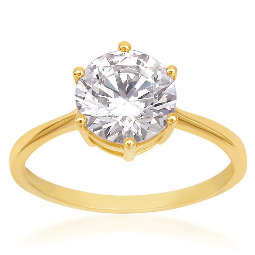 9ct Yellow Gold 8mm Zirconia 6 Claw Solitaire Ring