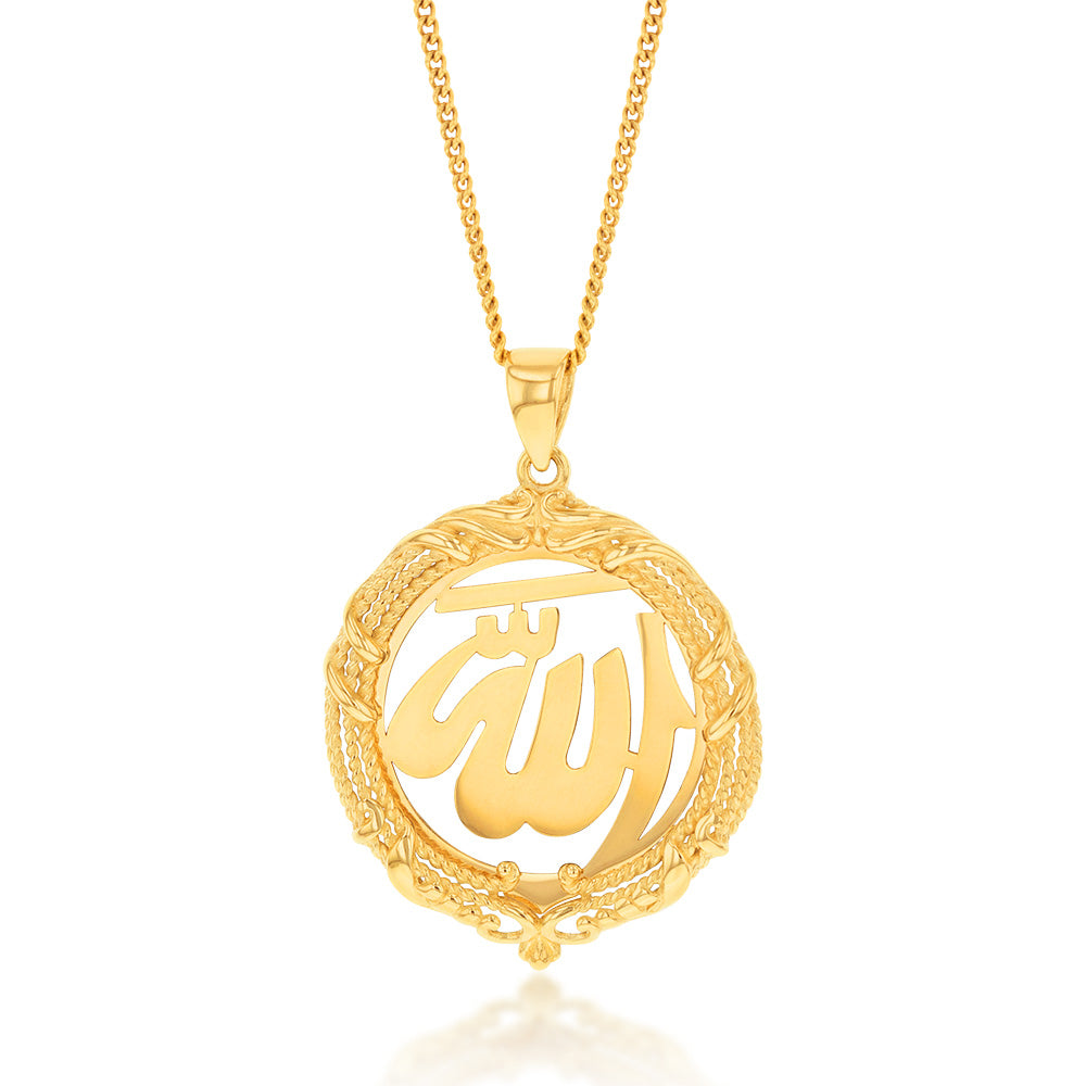 9ct Yellow Gold Allah Cut Out In Patterned Circle Pendant