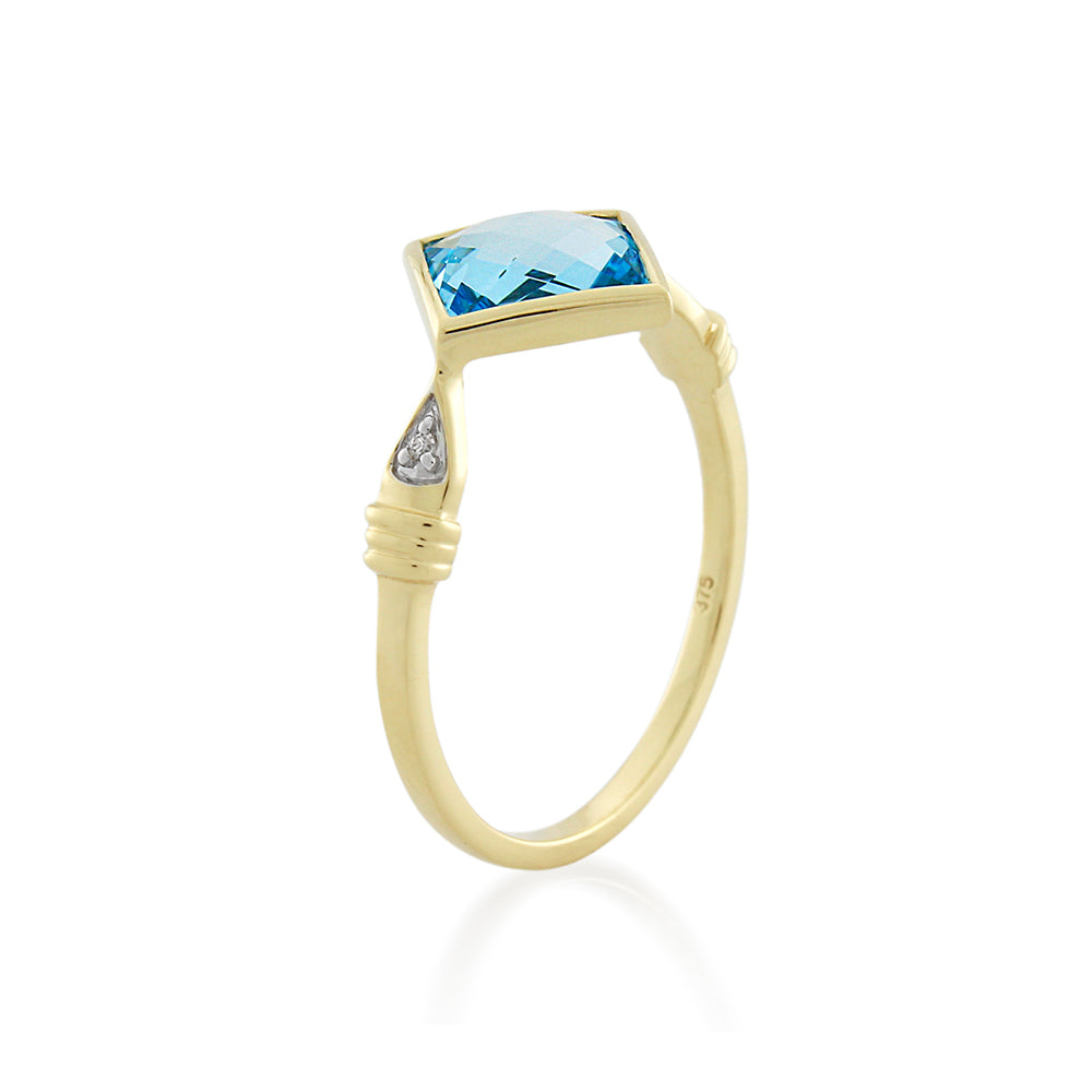 9ct Yellow Gold Blue Topaz and Diamond Ring