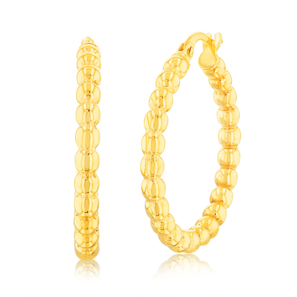 9ct Yellow Gold Bubble 20mm Hoop Earrings