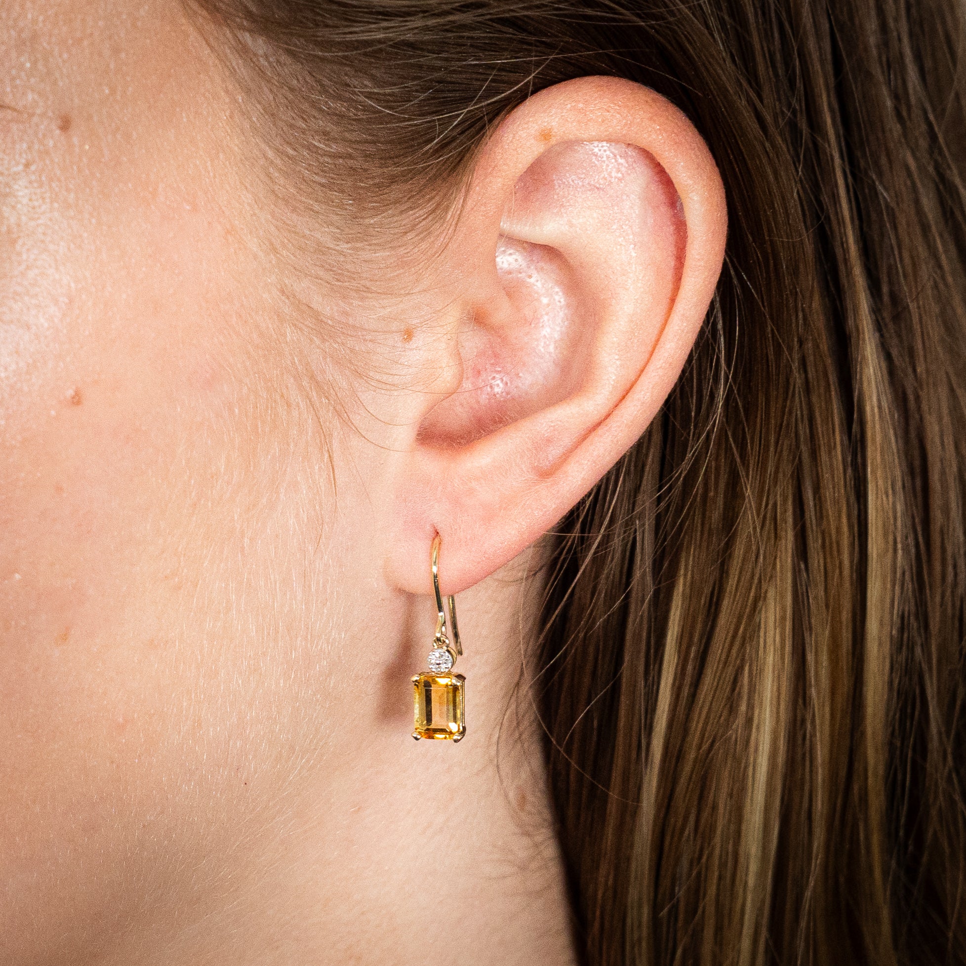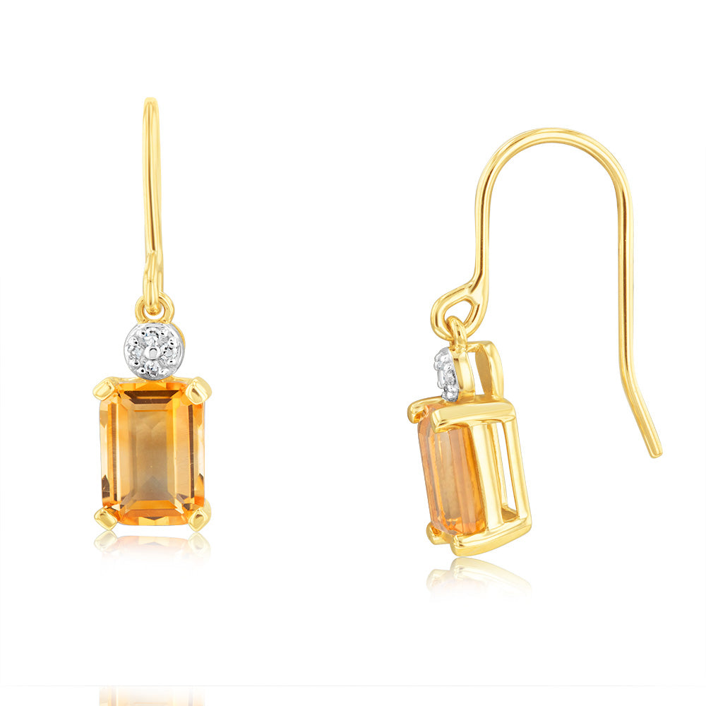 9ct Yellow Gold Citrine And Diamond Drop Earrings