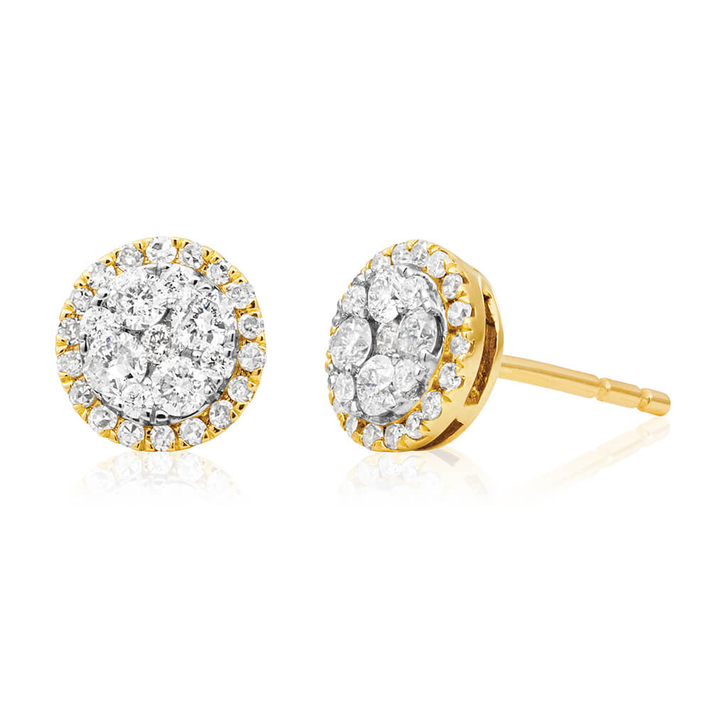 9ct Yellow Gold Cluster 1/2 Carat Diamond Stud Earrings