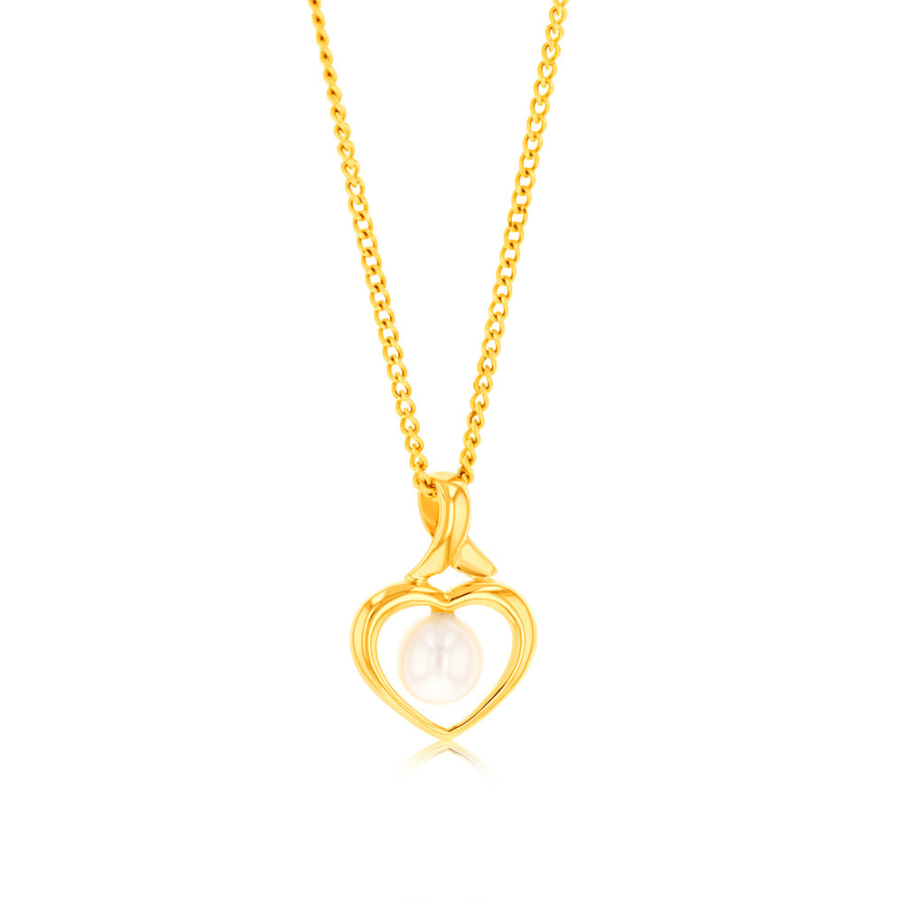 9ct Yellow Gold Created 4.5mm Cultured Pearl Heart Shaped Pendant